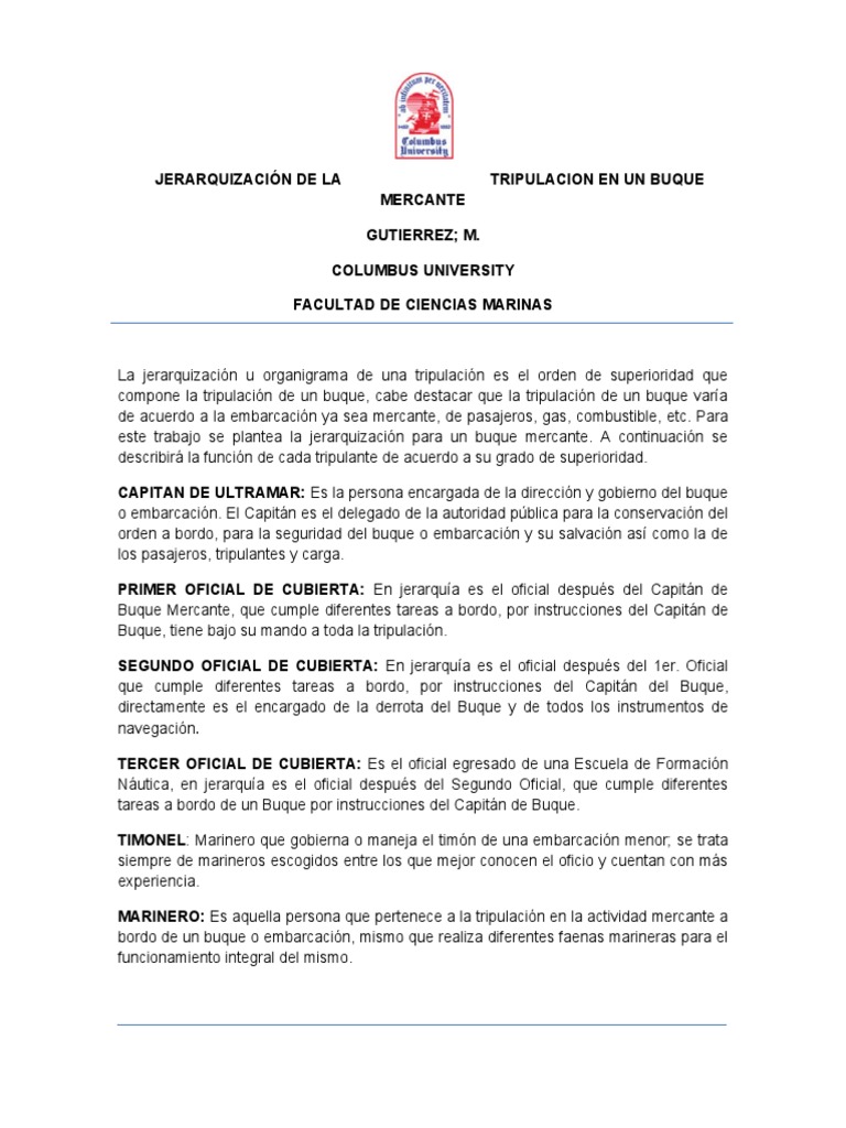 Organigrama De La Tripulacion De Un Buque Mercante By Beverly Rose Thomas Bolano