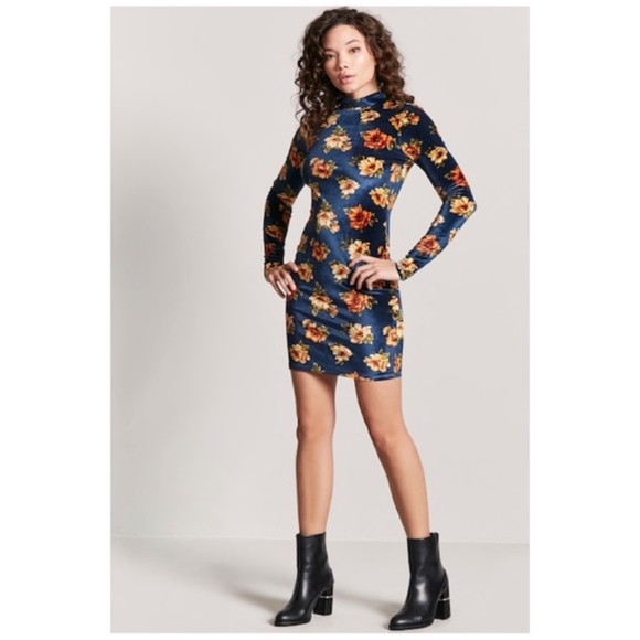 Forever 21 Dresses Forever 2 Floral Velvet Bodycon Turtleneck Dress Poshmark